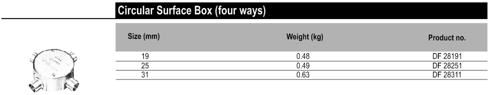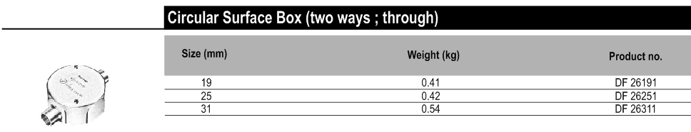 ACCESSORIES FOR C TYPE THIN WALL CONDUIT - Couplings, Normal Bends, Circular surface boxes (two way; through).