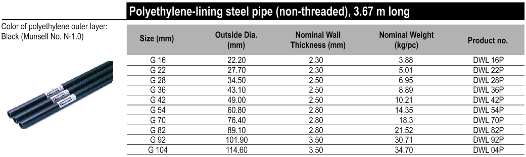 POLYETHYLENE - LINING STEEL PIPE, Corrotion resistant steel pipe for cable.