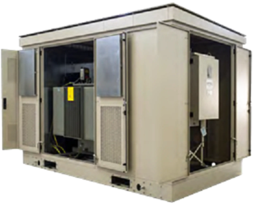 The Compact substation is a compact enclosure consisting of MV switchgear, a transformer and an LV switchboard located in three separate compartments which are segregated from each other by means of partitions in order to ensure personnel safety. Accessibility to operate or maintain the equipment is through lockable doors provided for each compartment to maximize security.